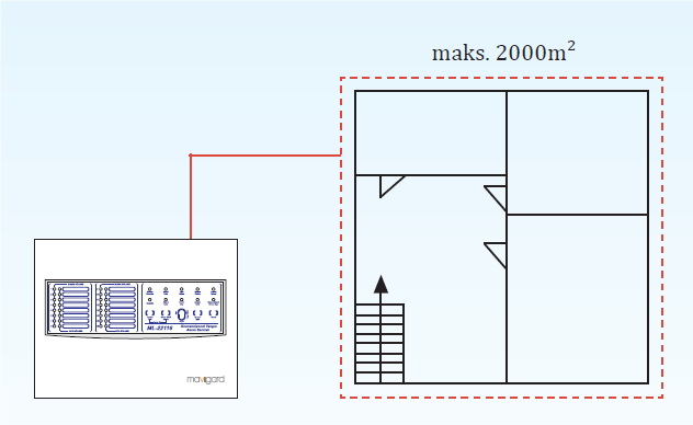 Şekil 12. Konvansiyonel algılama bölgesi – birden fazla yangın kompartımanı olması durumunda