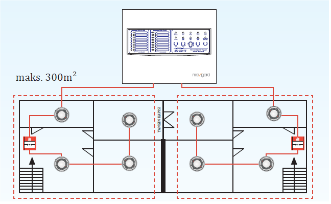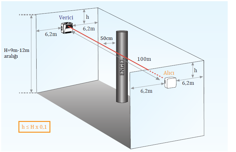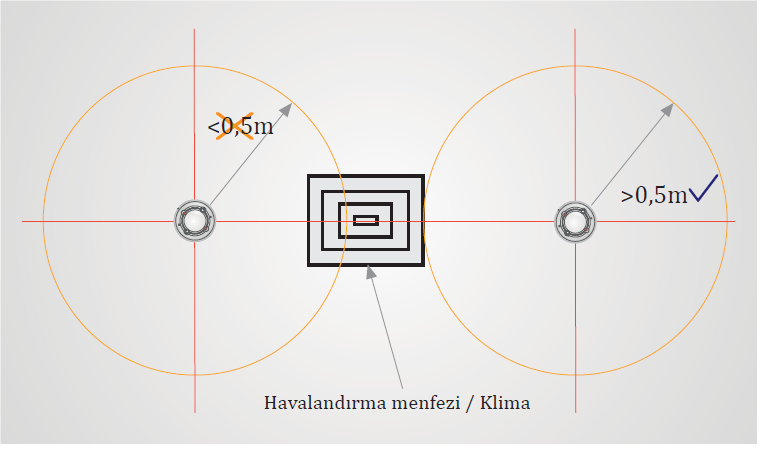 Şekil 2. Işın tipi duman dedektörü yerleşimi